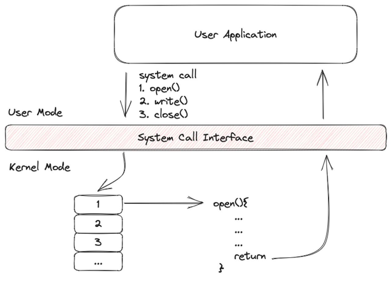 - 시스템 콜 호출: 프로그램이 운영체제의 특정 기능을 사용해야 할 때, 그 기능을 호출하는데 사용되는 함수 또는 명령을 호출합니다. 이것이 바로 시스템 콜입니다. (예를 들어, 파일을 열고 읽는 작업을 해야 할 때, 사용자 프로그램은 파일 관련 시스템 콜을 호출합니다.)